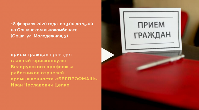 Read moreГлавный правовой инспектор труда Белорусского профсоюза работников отраслей промышленности «БЕЛПРОФМАШ» Иван Чеславович Ципко 18 февраля с 13.00 до 15.00 проведет