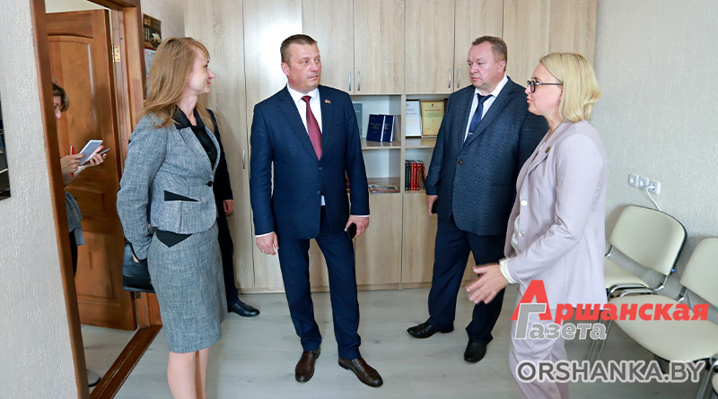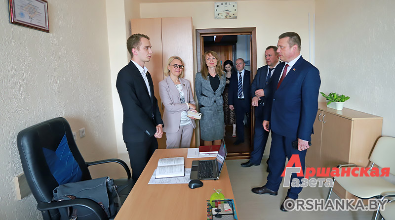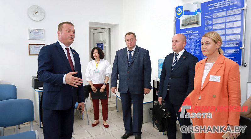 В Оршанском райисполкоме его приветствовал глава района Игорь Мороз. Встреча началась с посещения службы «одно окно» и отдела загс Оршанского райисполкома.