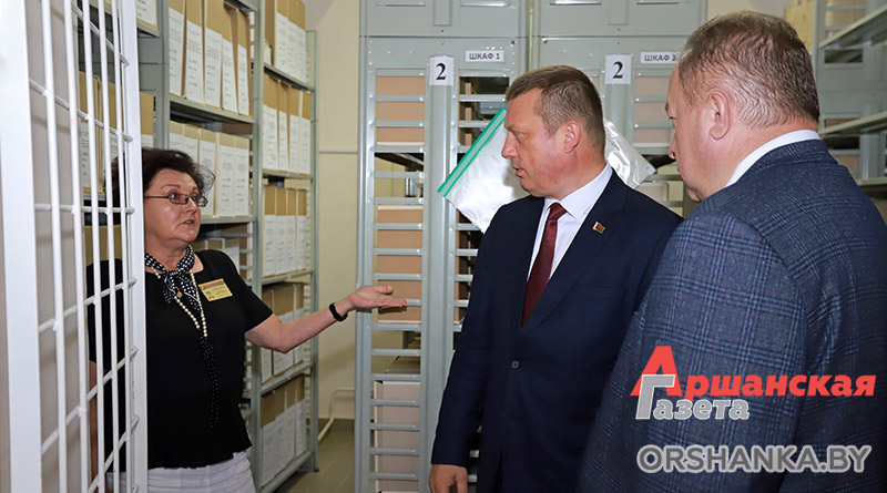 В зональном государственном архиве г. Орши глава ведомства поинтересовался освоением денежных средств, выделенных на текущий ремонт и пожарную сигнализацию. Поблагодарил за оперативность руководство архива в решении данных вопросов.