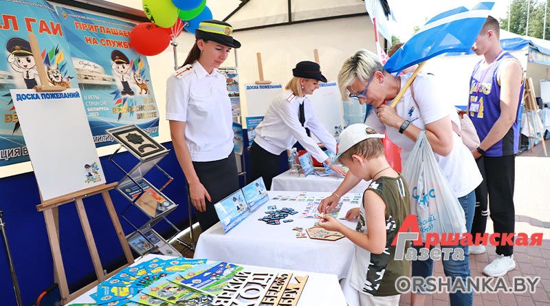 На территории Ледовой арены развернулись торговые, интерактивные и тематические площадки. Проходит акция МВД «За безопасность вместе».
