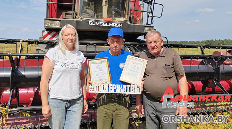 Прямо в поле его приехали поздравить лидер профсоюза АПК Ольга Никитенкова, заместитель директора по производству ОАО «Маяк Высокое» Владимир Миньков и председатель профсоюзной организации сельхозпредприятия Анна Беланович. Хлеборобу вручили диплом, премию и подарки.
