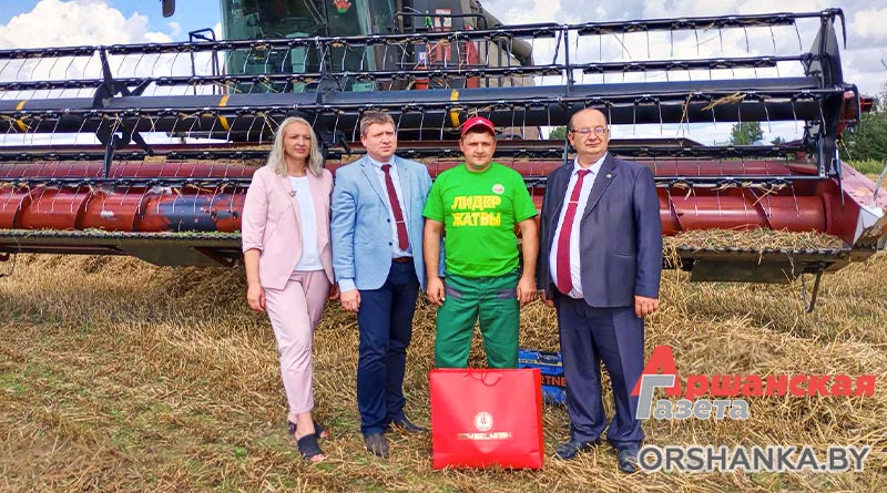 Сегодня с этим достижением его поздравили прямо на рабочем месте, в поле, представители ОАО «Гомсельмаш». Производители сельскохозяйственной техники учредили конкурс среди комбайнеров-тысячников, работающих на их зерноуборочных комбайнах в Беларуси. Заместитель директора центра продаж и сервиса Денис Поправка и торговый представитель по Республике Беларусь Дмитрий Разуванов поздравили лидера жатвы на отечественном комбайне, поблагодарили за работу, вручили ценные подарки и пожелали новых производственных успехов.