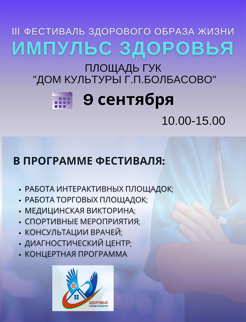 Фестиваль здорового образа жизни «Импульс здоровья» приглашает 9 сентября в Болбасово