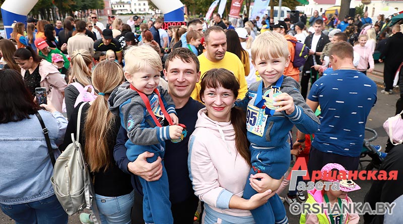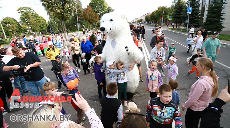 На самой короткой дистанции 500 м особенно ощущался праздник спорта и хорошего настроения. Этот путь с улыбками на лицах преодолевали участники семейного забега – самые юные бегуны 3-6 лет со своими родителями. Пришли подбодрить каждого и зарядить хорошим настроением давние друзья «Аршанскай газеты» Мишка Дени и Чебурашка. Вместе со сказочными героями малыши сделали разминку и вдоволь пообнимались. Дети бежали без учета времени, кто-то на плечах у папы, кто-то на самокате… Главной задачей было добраться до финиша.