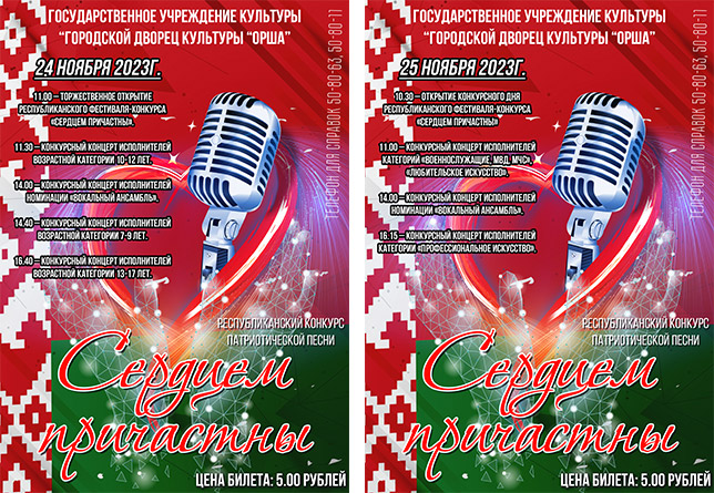 24 и 25 ноября в Городском Дворце культуры «Орша» пройдет Республиканский фестиваль-конкурс патриотической песни «Сердцем причастны»