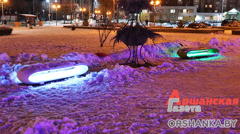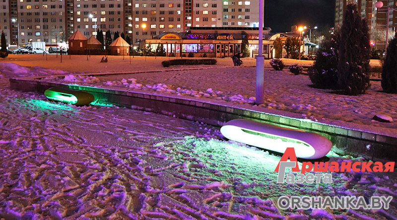 Это футуристические скамейки с подсветкой нового типа. Идея установить их в нашем городе принадлежит КУП «Оршакомхоз».