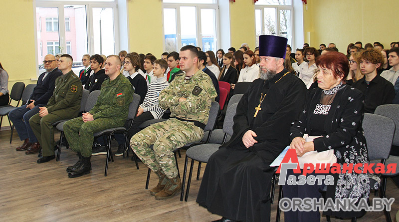 В мероприятии приняли участие представители школ района, воспитанники военно-патриотических клубов, а также почетные гости – председатель районной ветеранской организации Зинаида Хайченко, начальник отдела призыва на воинскую службу военного комиссариата Оршанского и Дубровенского районов Станислав Матохин, благочинный церквей центрального благочиния города Орши иерей Дмитрий Савушкин, контролер взвода охраны войсковой части 5524 Дмитрий Седуков и инженер радиоционного отделения 2 радиотехнического центра войсковой части 25888 Никита Церовальник.