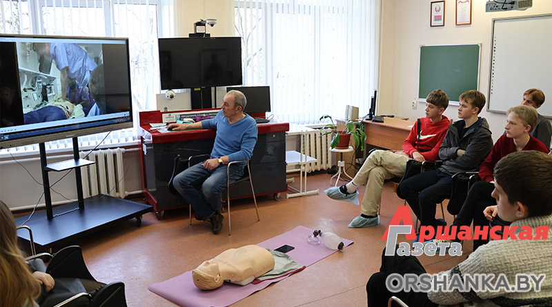 В минувшую субботу на базе Оршанского государственного медицинского колледжа прошло первое мероприятие для десятиклассников гимназий № 1 и 2. Полуторачасовое занятие включало теоретическую и практическую части. Сначала педагоги колледжа подробно рассказали и продемонстрировали школьникам, как действовать в ситуации, если человек оказался в критическом состоянии, как не поддаться панике и оказать первую помощь. Затем ребята на современных тренажерах и симуляторах отрабатывали практические навыки оказания базовой сердечно-легочной реанимации. В реальном режиме времени они пытались «оживить» манекен, делали прямой массаж сердца и искусственное дыхание.