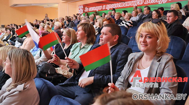 Праздничное настроение создавали творческие коллективы Оршанщины. Песни и стихи звучали на двух братских языках, а все номера были пронизаны любовью к нашей одной большой Родине.