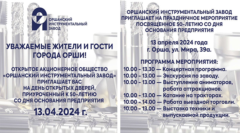 Оршанский инструментальный завод приглашает на день открытых дверей