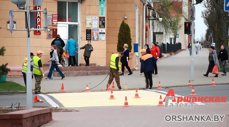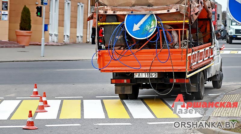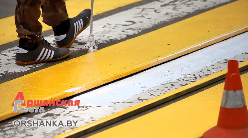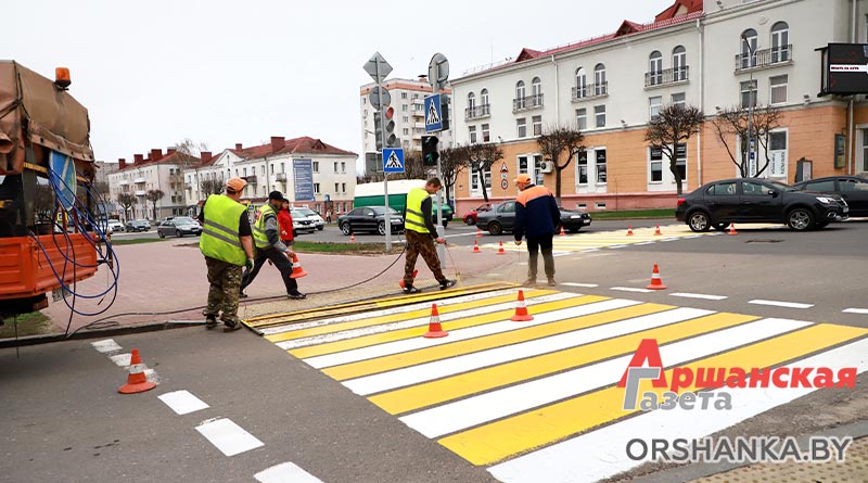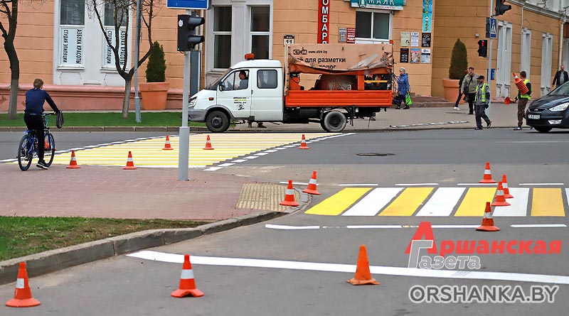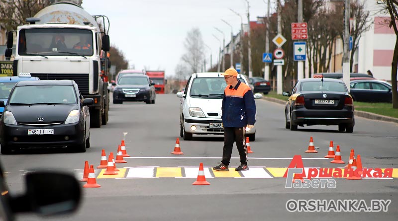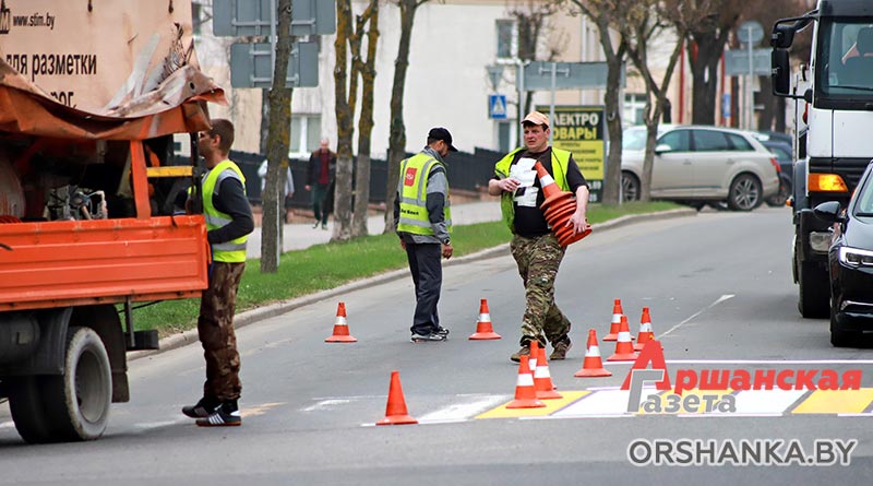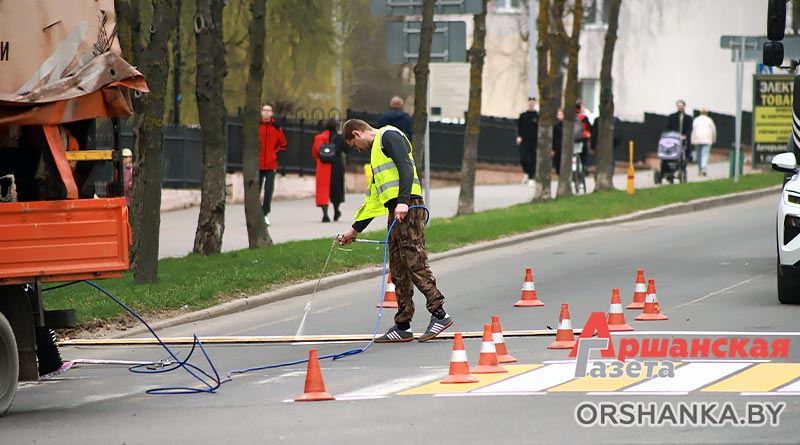С наступлением подходящих погодных условий в Орше приступили к нанесению дорожной разметки.