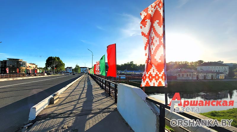 Жители и гости Орши обратили внимание, как преобразился город за последние дни. На мостах через Оршицу и Днепр по улицам Могилёвской, Советской, Мира, Бобкова и путепроводе по улице Грицевца установили более 460 флагов в цветах государственной символики.