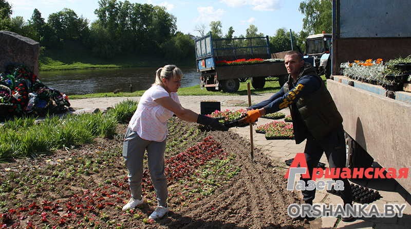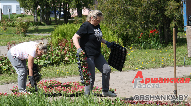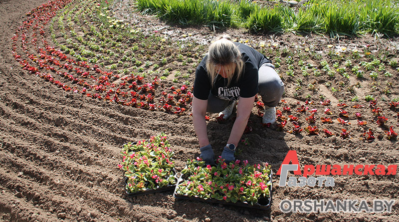 Ранее работники коммунального предприятия произвели покос травы, убрали мусор, подготовили площадки для клумб. Сейчас приступили к созданию цветочной композиции. Стоит отметить, что работники зеленого строительства в день высаживают около 8 тысяч цветов.