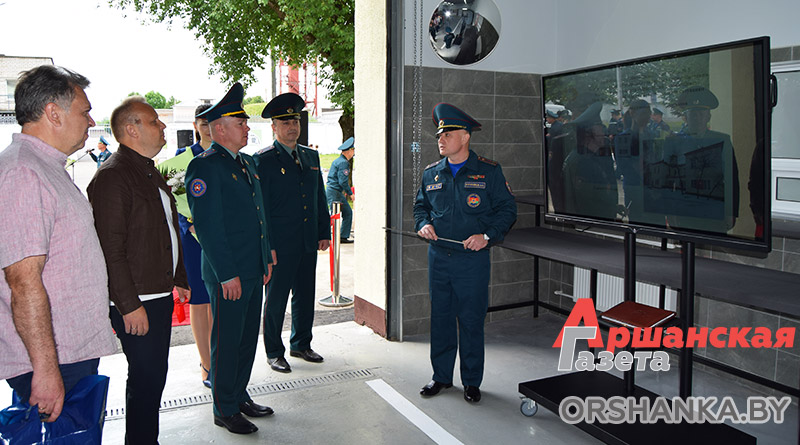 После того как была перерезана красная лента, начальник Оршанского ГРОЧС Андрей Курятников ознакомил гостей с материально-технической базой и современными бытовыми условиями пожарной аварийно-спасательной части № 5.