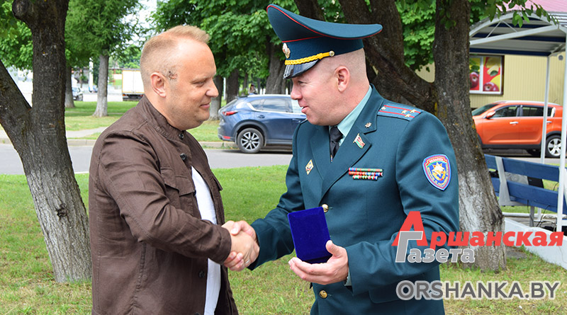 Генеральный директор Оршанского льнокомбината был награжден памятным нагрудным знаком «25 лет пожарному аварийно-спасательному отряду «Витязь».