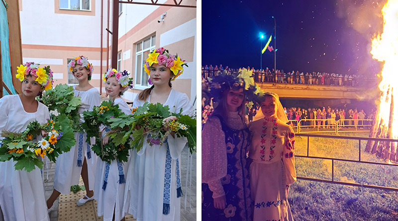 Возле стадиона «Олимпиец» мастер-класс по плетению купальских венков показали участники образцового фольклорного коллектива «Шчодрыкі», веселыми народными танцами под гармонь развлекали гостей праздника артисты народного ансамбля народной музыки и песни «Крынічанька», а ребят помладше ждала увлекательная игровая программа.