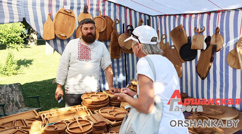 Чего только там не увидишь – изделия из соломки, лозы, дерева, стекла, тканей, шерсти, кожи, декоративных камней, глины, металла. Невозможно пройти мимо и не остановиться, чтобы в подробностях разглядеть все это многообразие ручной работы. Свои авторские изделия представляют мастера Оршанского Дома ремесел и Центра народного творчества и ремесел Копыси, а также индивидуальные мастера.