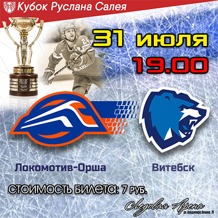 ХК «Локомотив-Орша» свой первый матч сыграет 31 июля в 19.00. В Оршу приедут двукратные обладатели второго по значимости хоккейного трофея страны из Витебска.