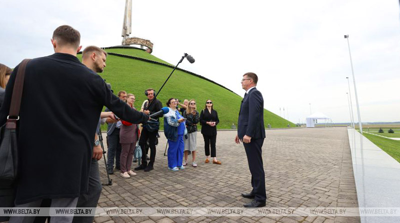 Общаясь с журналистами, Александр Турчин заметил, что Курган Славы — один из важнейших символов Беларуси. Причем в философии монумента — не трагические страницы истории, а героический подвиг наших предков, разгромивших врага и освободивших республику.