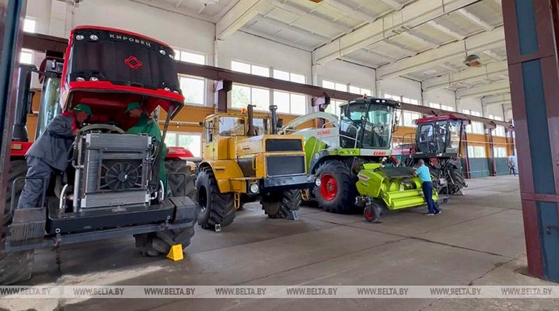 — Мы не жалуемся. 55% (площадей. — Прим. БЕЛТА) мы убрали. 58,6 ц/га — средняя урожайность. Пшеницы дают сегодня по 72-75 ц/га. Озимый ячмень мы убрали — 48 ц/га дал. Ячмени яровые где-то тоже 48-50 ц/га дают. Тритикале — около 60. Думаю, мы порядка 38 тыс.т зерна в этом году получим, — рассказал директор.
