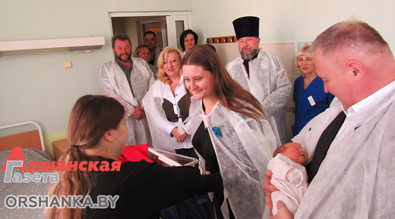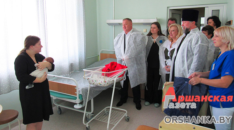 Поздравить мам с этим счастливым событием в их жизни пришли главный врач УЗ «ОЦП» Сергей Карака, благочинный церквей центрального благочиния г. Орши Дмитрий Савушкин, а также представители РОО «Белая Русь», Белорусского союза женщин, Оршанской центральной поликлиники и Оршанского родильного дома.