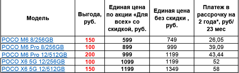 Перечень смартфонов POCO со скидками представлен в таблице: