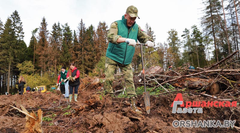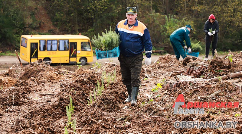Высадили более 15 тысяч саженцев елей, дуба и клена на площади более 4 га. Как рассказал журналисту «Аршанскай газеты» директор ГЛХУ «Оршанский лесхоз» Сергей Суходолов, возобновление леса проводится на участке, где этим летом прошел ураган и уничтожил 85 га лесных насаждений. Работники лесхоза за два месяца убрали все поваленные деревья, а теперь на этом месте будет расти молодой лес.