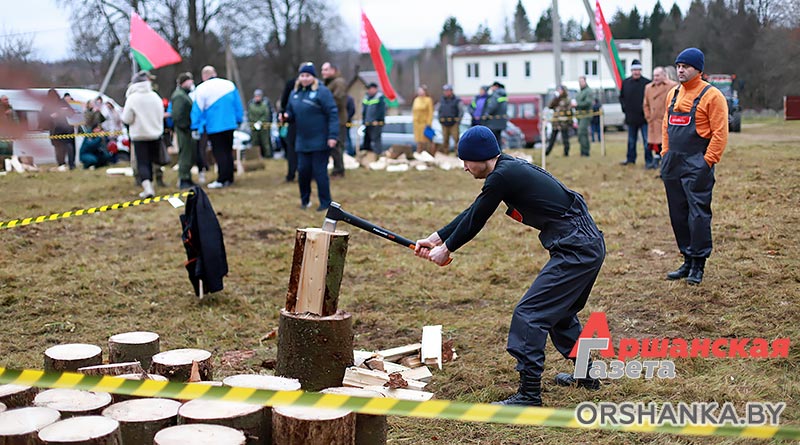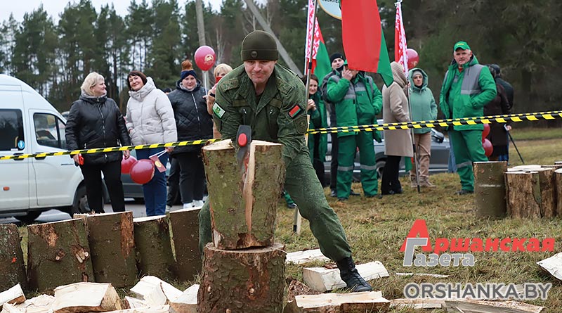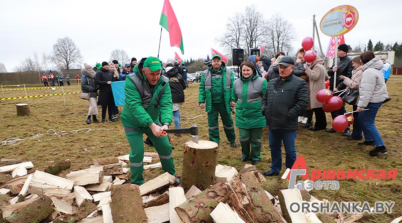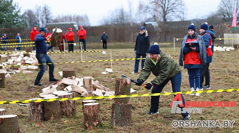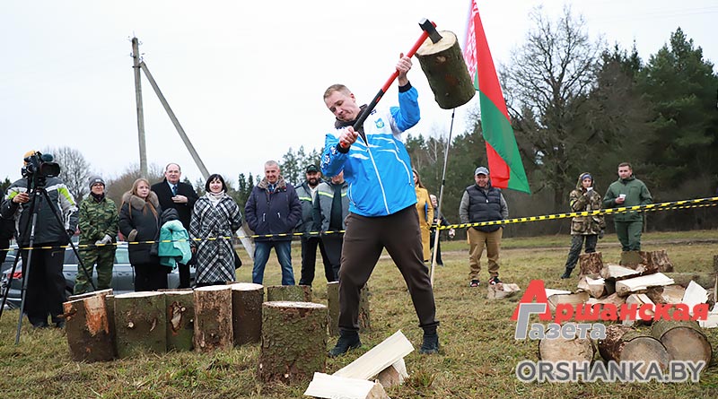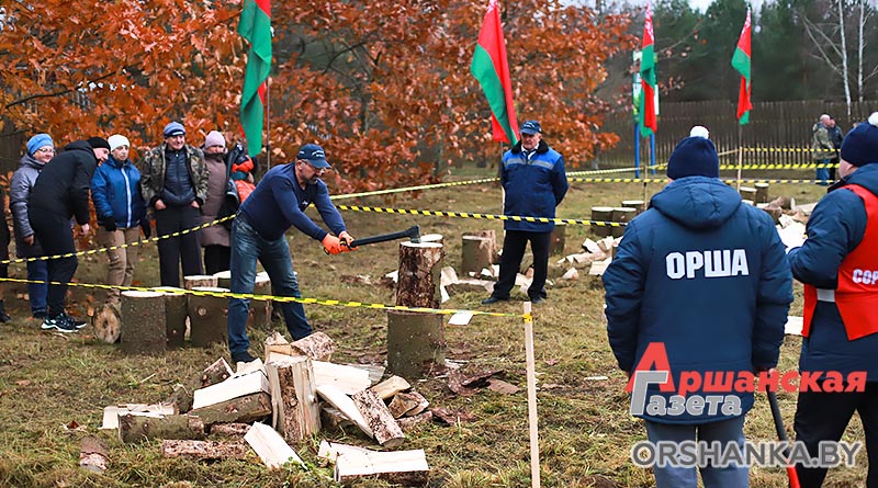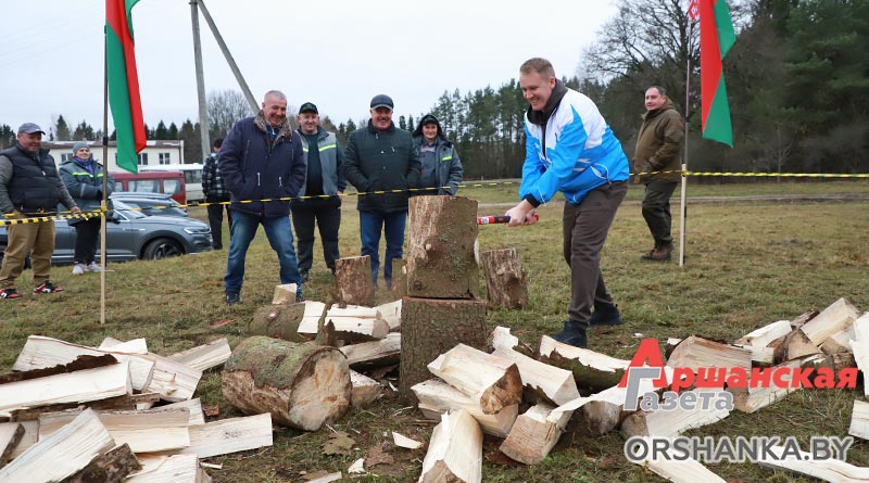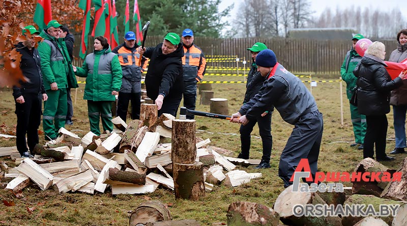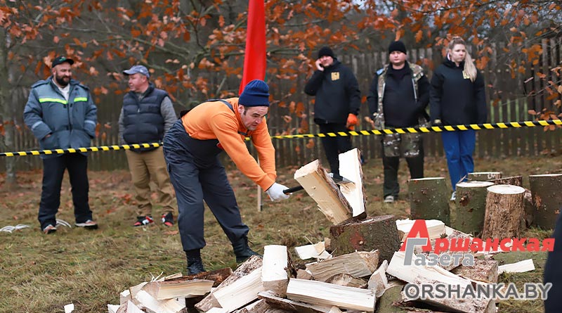 И уже сегодня в г. п. Копысь прошло районное первенство по колке дров среди предприятий и организаций региона «Орша рубит!». В нем приняли участие 12 команд во главе с руководителями: Оршанского райисполкома, Оршанского районного Совета депутатов, агрокомбината «Юбилейный», Оршанского ГРОЧС, Оршанской центральной поликлиники, птицефабрики Оршанской, КФХ «Старт ТС», военного комиссариата Оршанского и Дубровенского районов, отдела спорта и туризма Оршанского райисполкома, партии «Белая Русь», Оршанского лесхоза и «Аршанскай газеты».