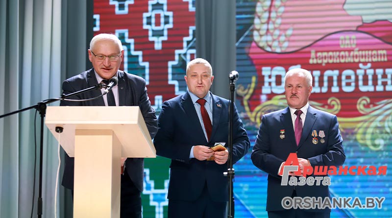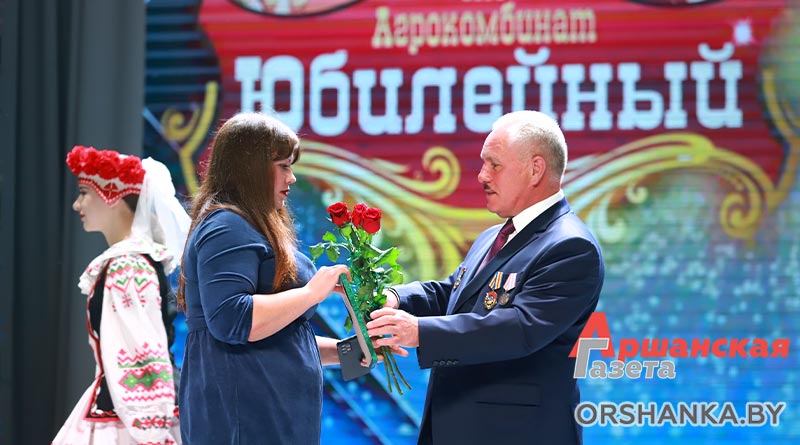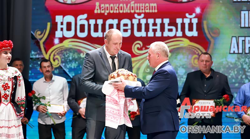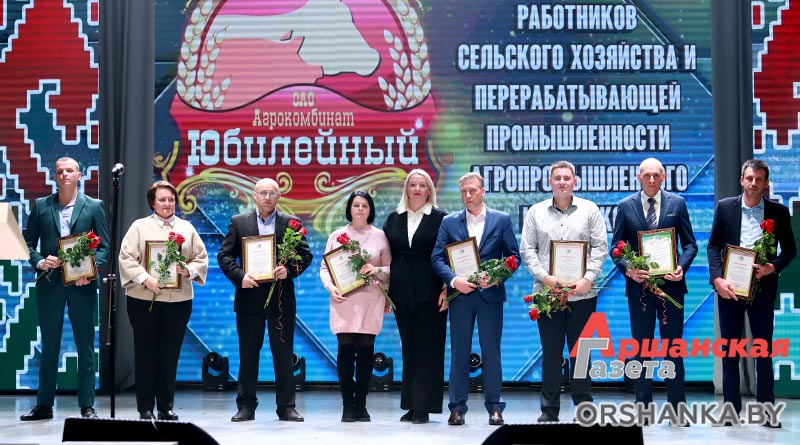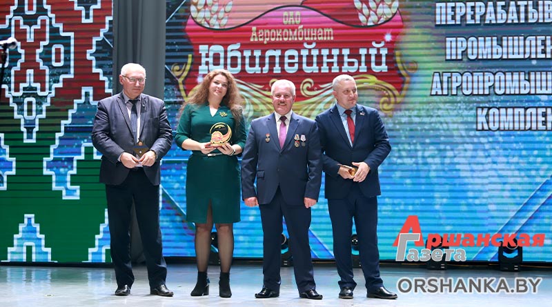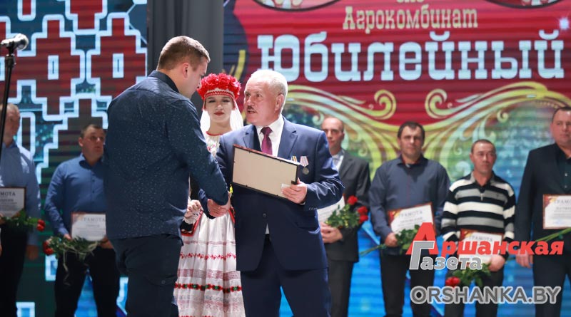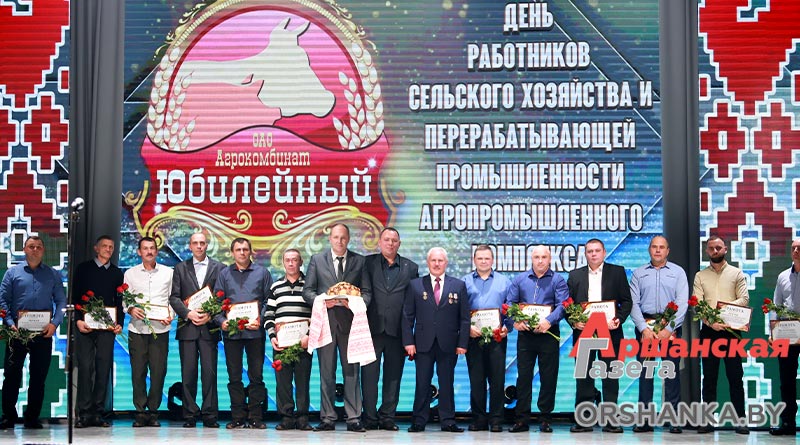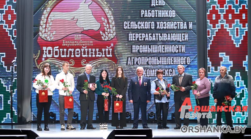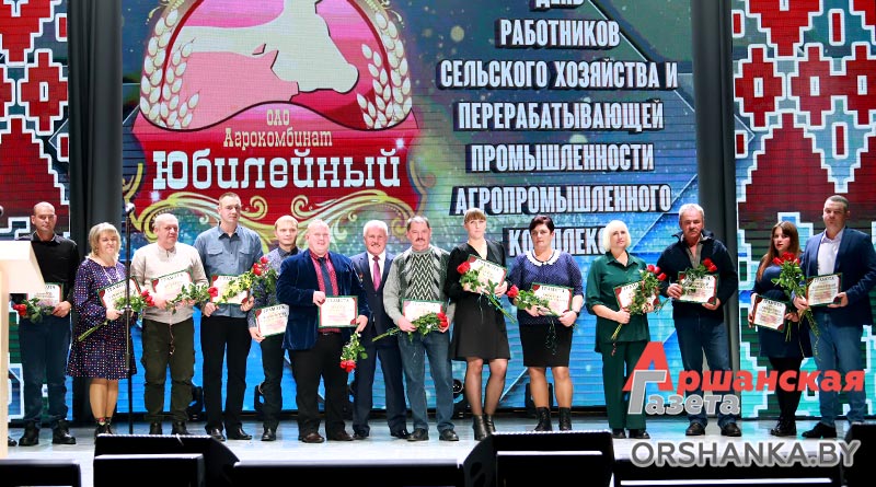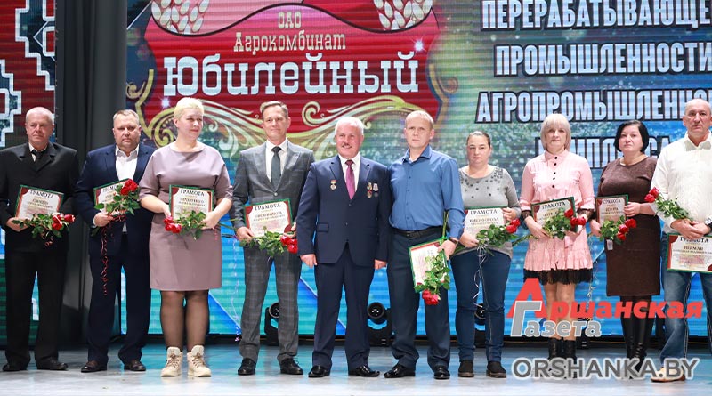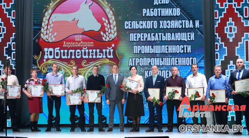 В этот вечер со сцены дворца культуры звучало много слов благодарности в адрес работников агрокомбината. Поздравляя коллектив «Юбилейного», председатель Оршанского райисполкома Игорь Мороз отметил, что агропромышленный комплекс – это основа экономики любого района, а основой успешного решения задач АПК является высокий профессионализм аграриев, любовь и преданность избранному делу, верность славным традициям. На данный момент агрокомбинат «Юбилейный» занимает 40 % в общем объеме зерна Оршанского района, производства молока и свинины – 50 %. На агрокомбинате производят более 150 видов продукции, которая представлена в 21 торговом объекте.