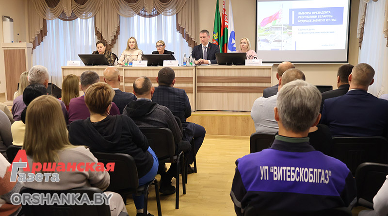 В рамках Единого дня информирования председатель Оршанского районного Совета депутатов Инна Хомутовская провела встречу с трудовым коллективом ПУ «Оршагаз». Основной темой диалога стали выборы Президента Республики Беларусь.