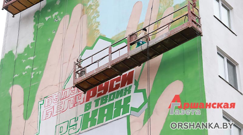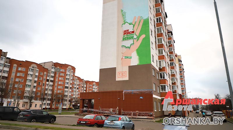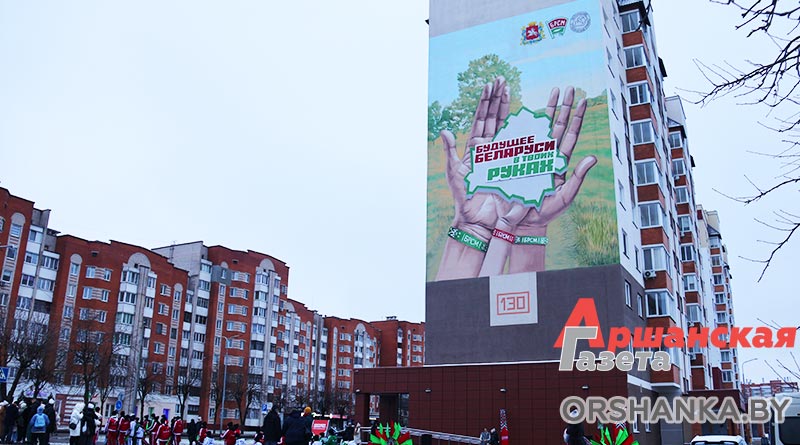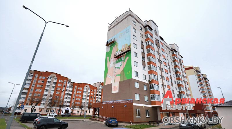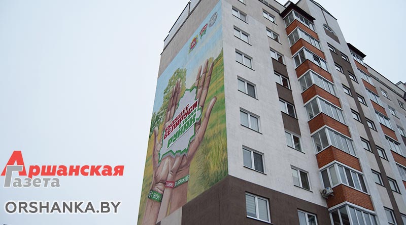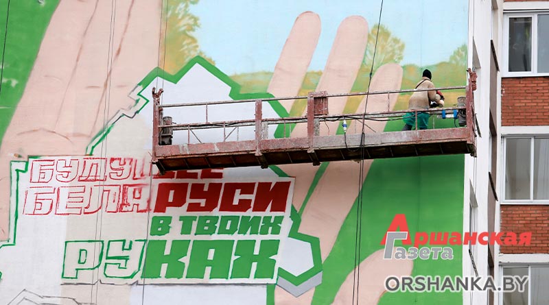 В Орше в рамках республиканской общественно-культурной акции «Марафон единства» открыли тематический мурал «Будущее Беларуси в твоих руках». Он разместился возле Ледовой арены на стене многоквартирного дома по улице Владимира Ленина, 130.