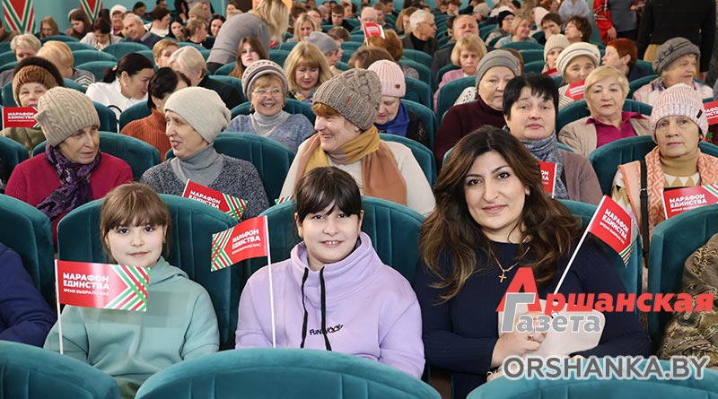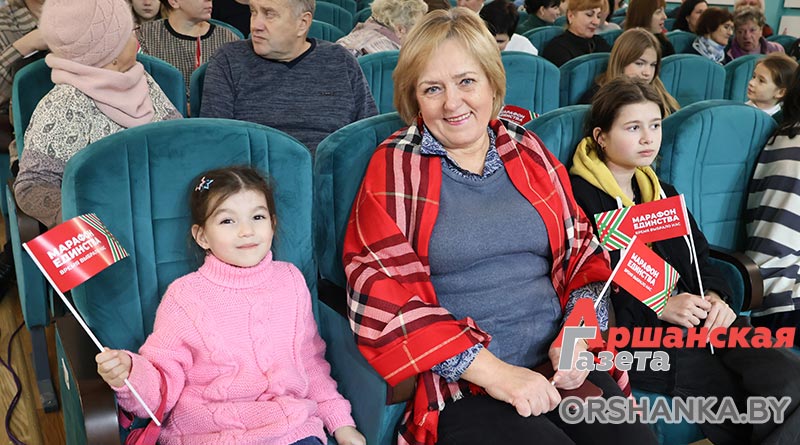 Зрители были очень активными и встречали каждую композицию бурными овациями. А молодежь активно участвовала во всех конкурсах. В одном из них нужно было повторить за ведущим скороговорки. Получалось это далеко не у всех, но все очень старались, и без призов никто не остался. Самые активные участники получили от организаторов «Марафона единства» брендированные сувениры.