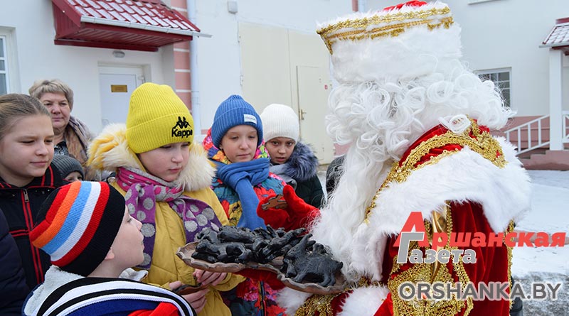 И, конечно, не обошлось без стихов, адресованных главным новогодним персонажам. За это Дедушка Мороз вручил не только сладкие подарки, но и черных глиняных зайцев – символ Копыси.