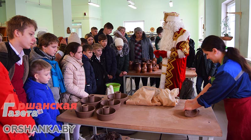 Первой точкой маршрута стал Центр народного творчества и ремесел. Здесь их встречали Дед Мороз и Снегурочка. Они познакомили ребят с работой учреждения. Самым запоминающимся моментом стал мастер-класс по изготовлению новогодних игрушек из глины. Мальчишки и девчонки дали волю своему воображению. Некоторые за небольшой промежуток времени смогли сделать сразу несколько игрушек.