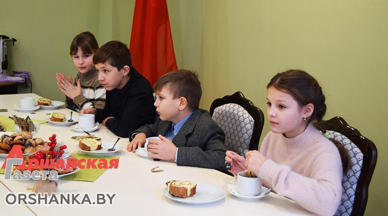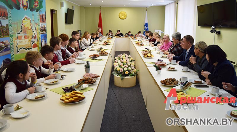 Затем продолжилось общение в неформальной обстановке за сладким столом. Здесь у детей была уникальная возможность задать вопросы руководству района. Ребят интересовали абсолютно разные вещи, начиная от любимых фильмов и сказок Игоря Александровича и заканчивая тем, каким глава региона видит Оршанщину через несколько лет. Два часа пролетели незаметно.