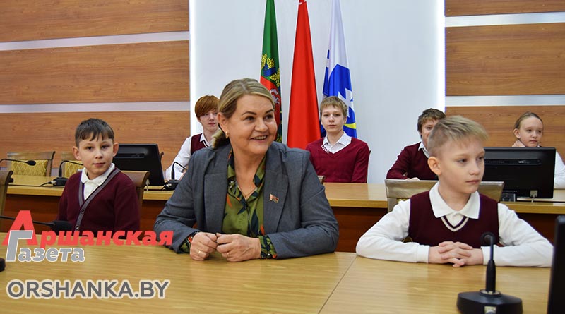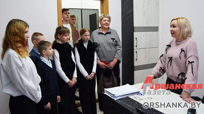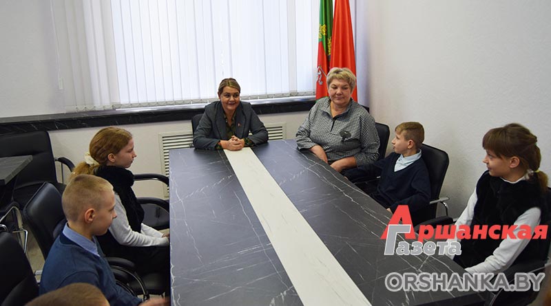 Детей из семей Елены и Николая Морозовых, Светланы Леонтьевой, Светланы и Александра Королёвых пригласили в гости в Оршанский райисполком. Ребята побывали у главы района Игоря Мороза и председателя Оршанского районного Совета депутатов Инны Хомутовской.