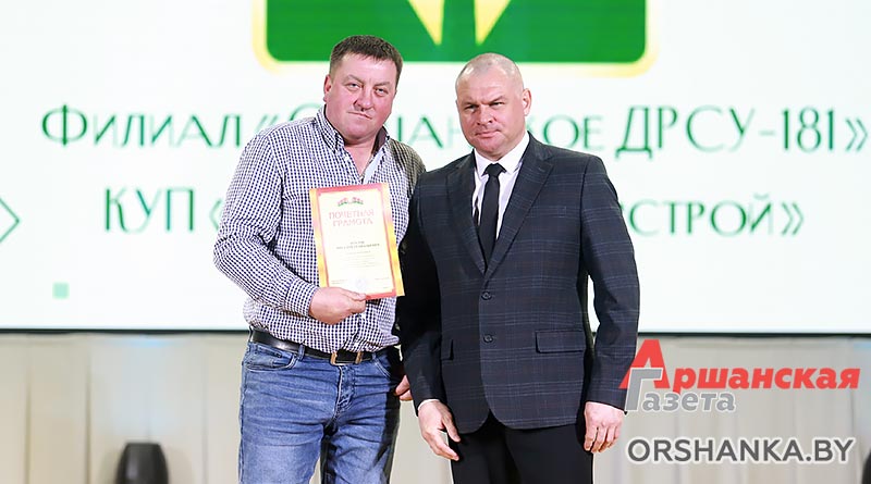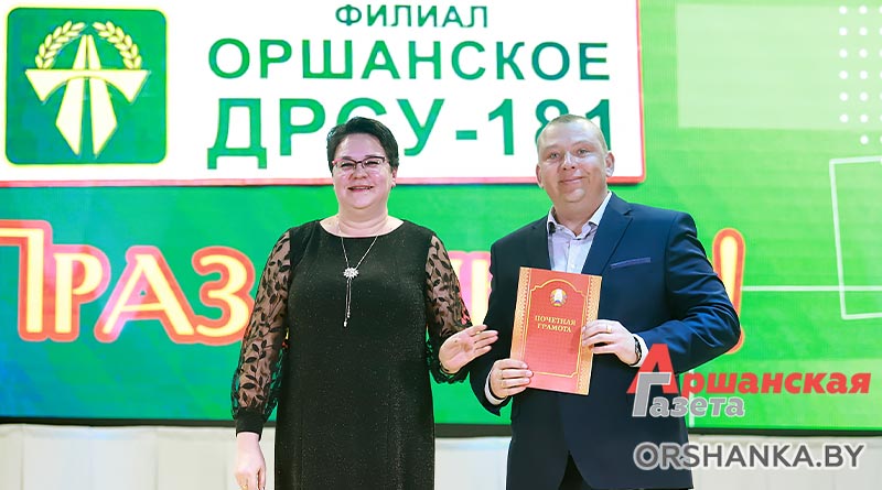 Заместитель генерального директора КУП «Витебскоблдорстрой» Анна Куртенок тепло поздравила коллектив филиала ДРСУ-181 КУП «Витебскоблдорстрой» с юбилеем, зачитала поздравительный адрес от руководства и также наградила лучших работников предприятия грамотами Министерства транспорта и коммуникаций, КУП «Витебскоблдорстрой». Нагрудным знаком отличия «Почетный дорожник Беларуси» 2-й степени был отмечен водитель Александр Подоляк.