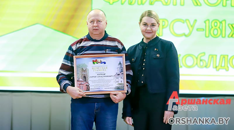 Инна Хомутовская вручила Почетные грамоты Оршанского районного Совета депутатов и районного исполнительного комитета, Благодарности председателя райисполкома начальнику планово-производственного сектора Людмиле Андреевой, помощнику машиниста смесителя асфальтобетона Александру Шпакову, трактористу Сергею Габрилёву, кладовщику Павлу Мавлееву, сторожу Сергею Шупене, мастеру Ольге Макаренковой, машинисту асфальтоукладчика Валерию Атрашкевичу, начальнику участка автотранспорта Эдуарду Сапончику, машинисту катка Александру Гайкову.