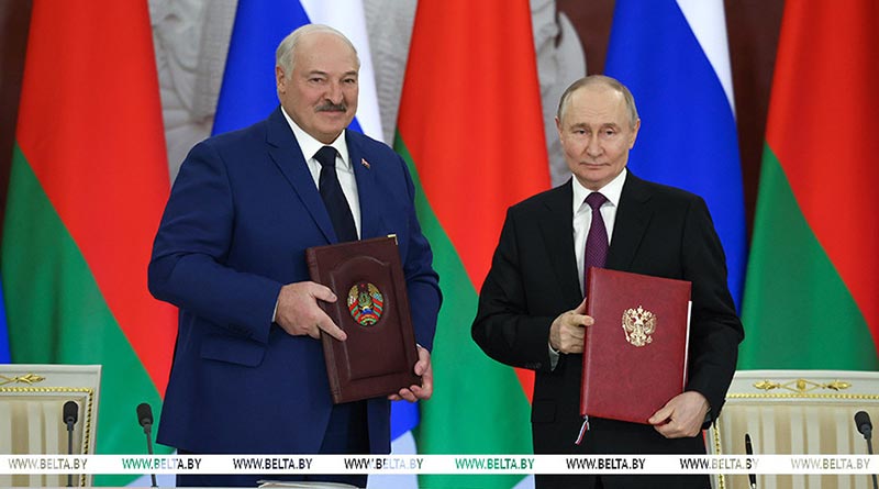 Президенты Беларуси и России Александр Лукашенко и Владимир Путин подписали совместное заявление