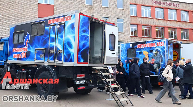 Сегодня в гимназии № 1 г. Орши имени Г. В. Семёнова мероприятие прошло не в обычном формате, а выездном. В гости к ребятам приехало предприятие «Оршагаз». Во дворе гимназии развернулась целая выставка автомобилей, задействованных на техническом обслуживании наружных газопроводов.