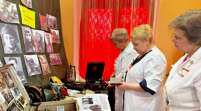 Заведующая поликлиникой № 1 Ольга Калачёва предоставила для выставки ценные семейные реликвии: старые фотографии, военные билеты, патефон и пластинки. Старшая медсестра Лилия Худолеева поделилась копией номера газеты «Правда» от 10 мая 1945 года, посвященного Победе в Великой Отечественной. Акушерка Марина Кучинская принесла радио времен войны, которое служило для людей своего рода окном в мир, держа в курсе событий на фронте. От медсестры Ирины Долголевич на выставке — памятные открытки в честь Победы, а еще военная фляжка, напоминающая о солдатском быте.