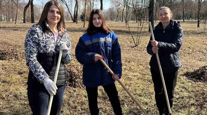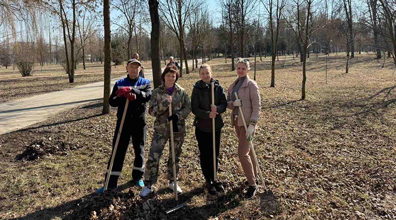 Дружно поработали на уборке парка возле Кургана Бессмертия работники филиала «Оршанский хлебозавод».
