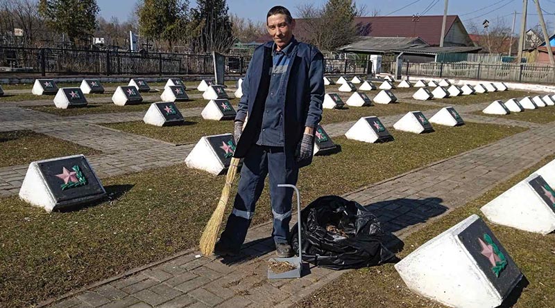 Работники завода «Легмаш» в этот солнечный день убирали воинское захоронение по ул. Пролетарской. С ними трудились учащиеся СШ № 16 и учитель трудового обучения Андрей Доронин. Андрей Дмитриевич отметил, что к этому мемориалу у него особое отношение, так как здесь захоронен его дед Зябкин Еремей, который был подпольщиком во время Великой Отечественной войны и погиб от рук фашистов.