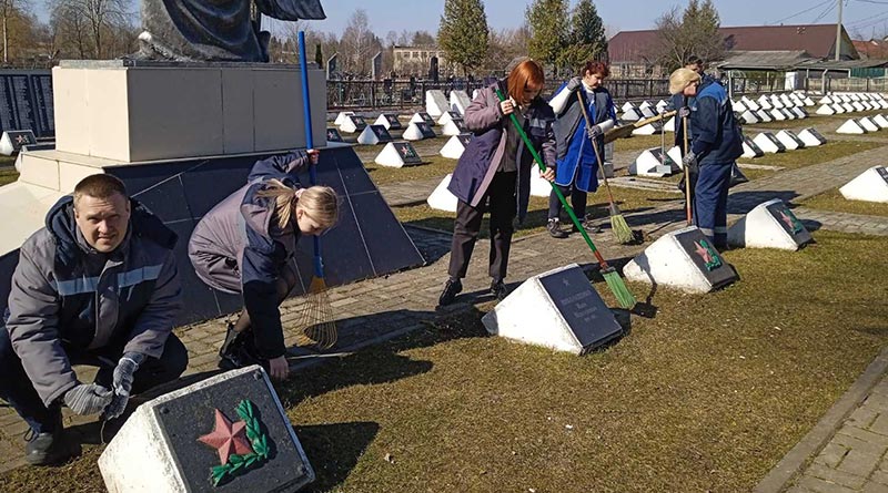 Работники филиала № 7 «Оршастройматериалы» ОАО «Белорусский цементный завод» усердно трудились на уборке воинского захоронения в аг. Межево.