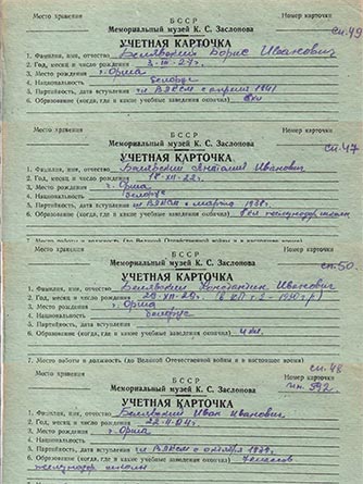 На фото: учетные карточки из архива Военно-исторического музея имени К. С. Заслонова — филиала УК «Музейный комплекс истории и культуры Оршанщины».