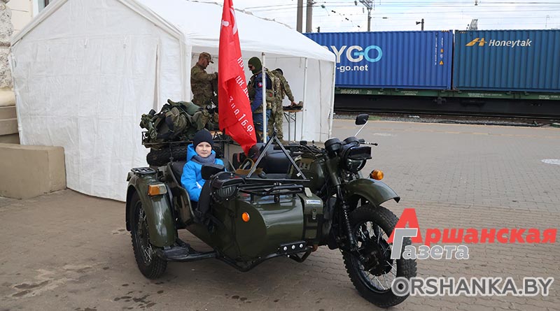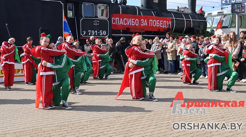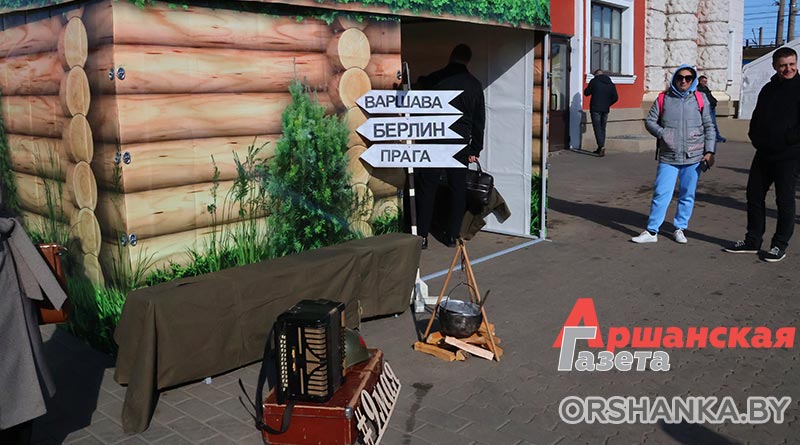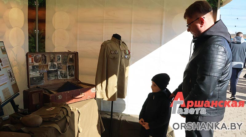 Перед началом торжественных мероприятий работали тематические интерактивные площадки. Гости могли познакомиться с экспонатами мобильной выставки «Музей в чемодане» Оршанского районного центра физической культуры, туризма и краеведения детей и молодежи и окунуться в атмосферу победного мая 1945 года, реконструкцию которого представили учащиеся Оршанского медицинского колледжа.