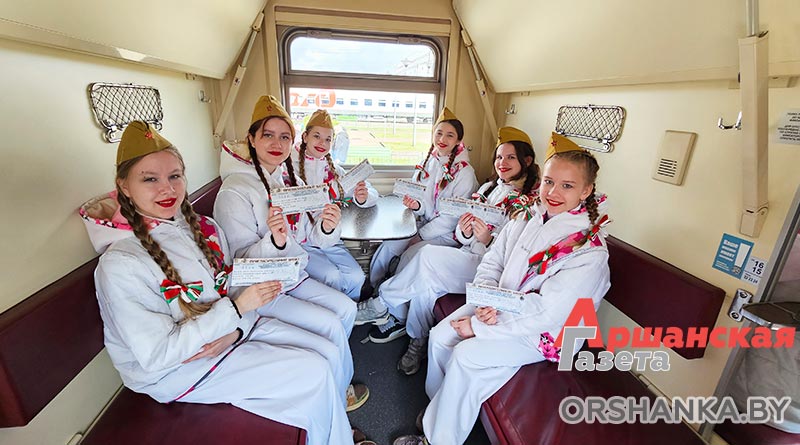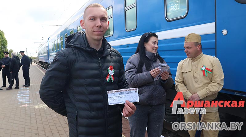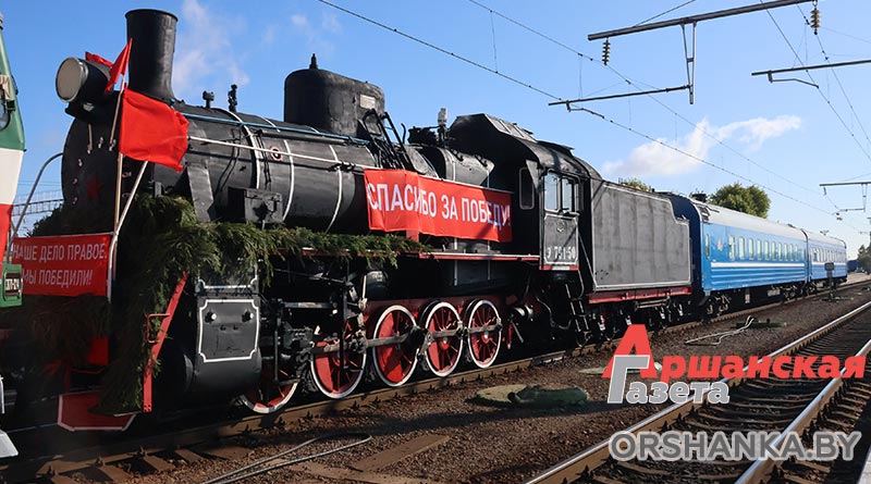 Затем участники торжественных мероприятий, как и почти 100 лет назад, проделали путь на поезде от станции Орша-Центральная до станции Лепель. К месту назначения поезд доставил паровоз серии «Э», стилизованный под локомотив, который в 1945-м году привез поезд с солдатами-победителями из Берлина в Москву. Во время движения работала концертная агитбригада, звучали стихи и песни военных лет.