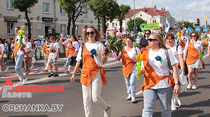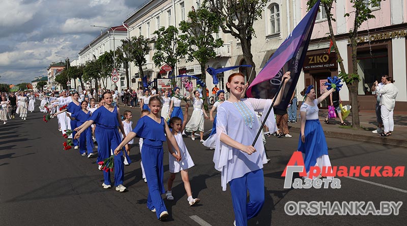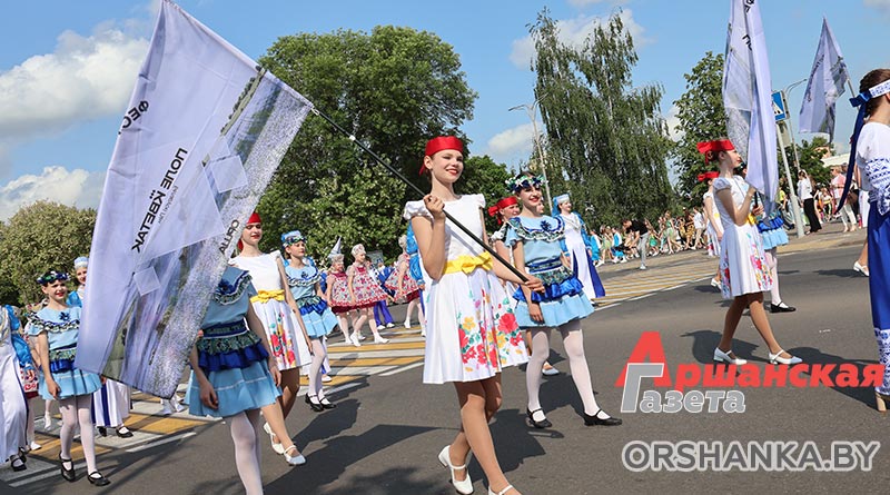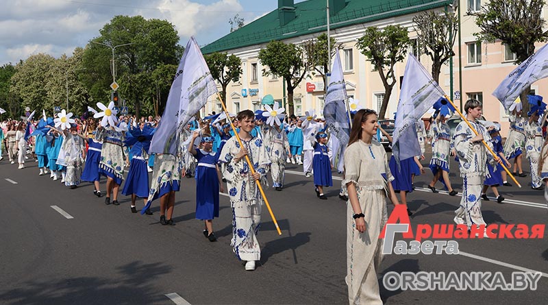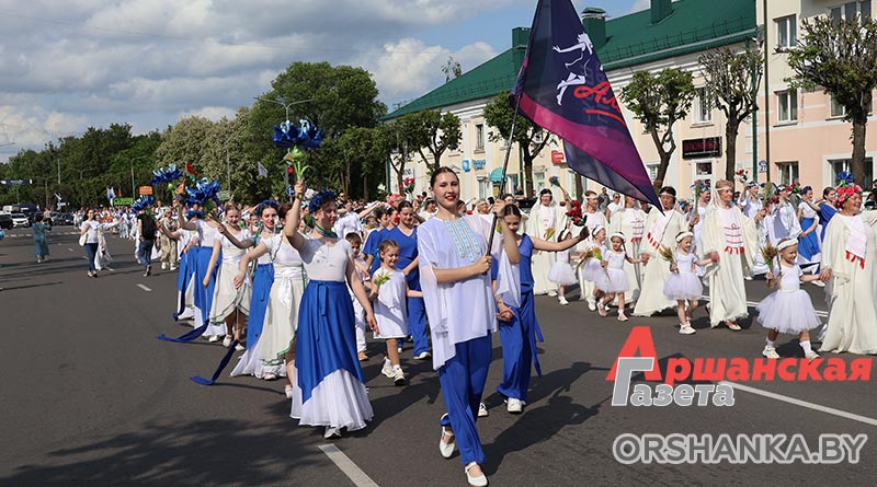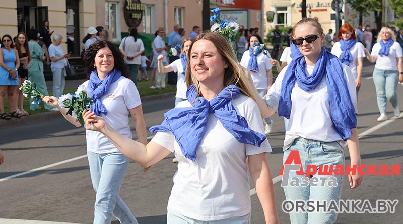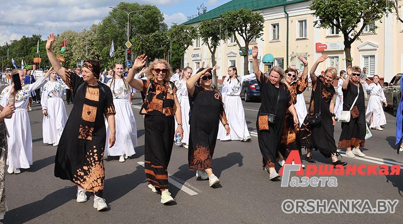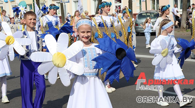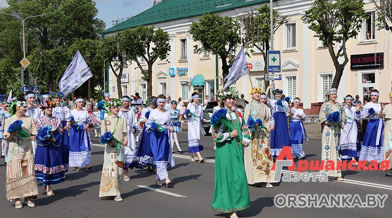 В Орше продолжается фестиваль льна «Поле кветак». После концертной программы «Разам танчым, разам спяваем» он продолжился торжественным шествием «Льняная палитра».