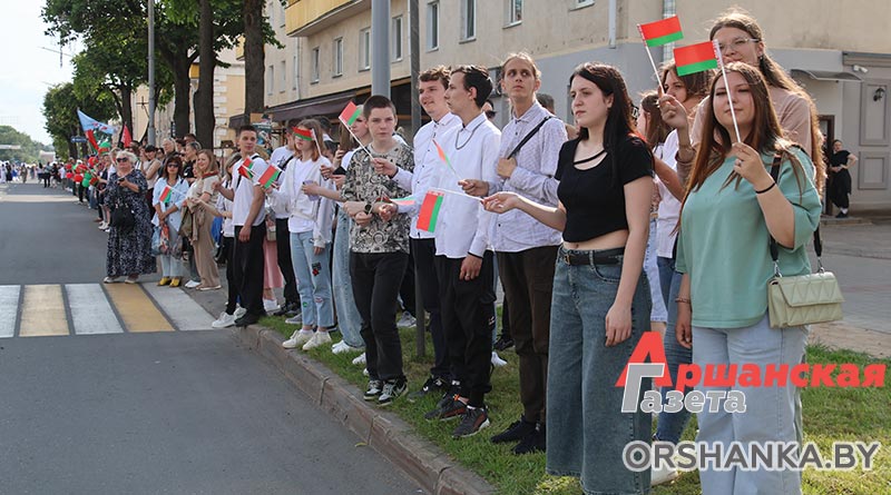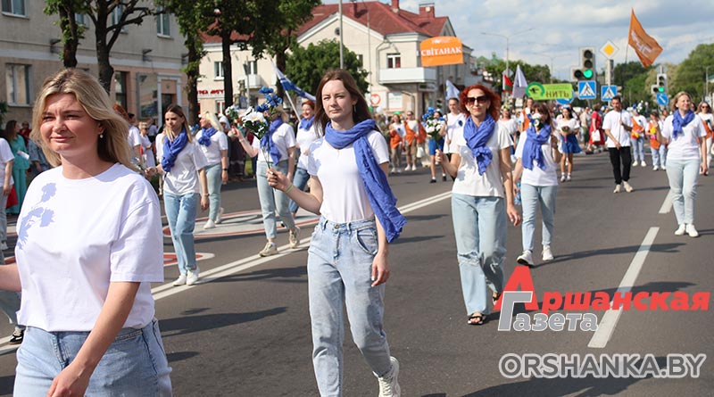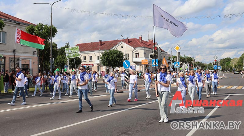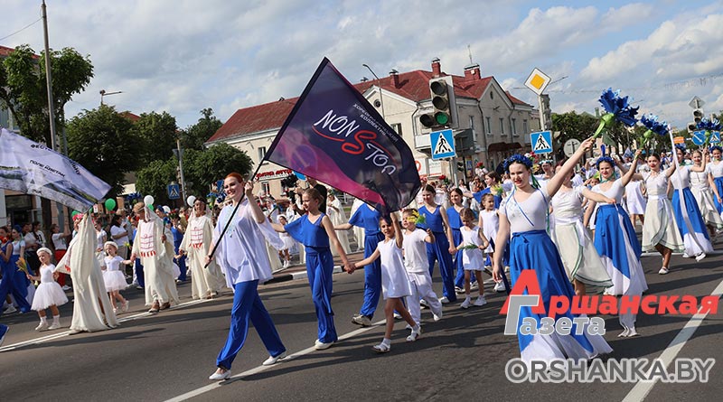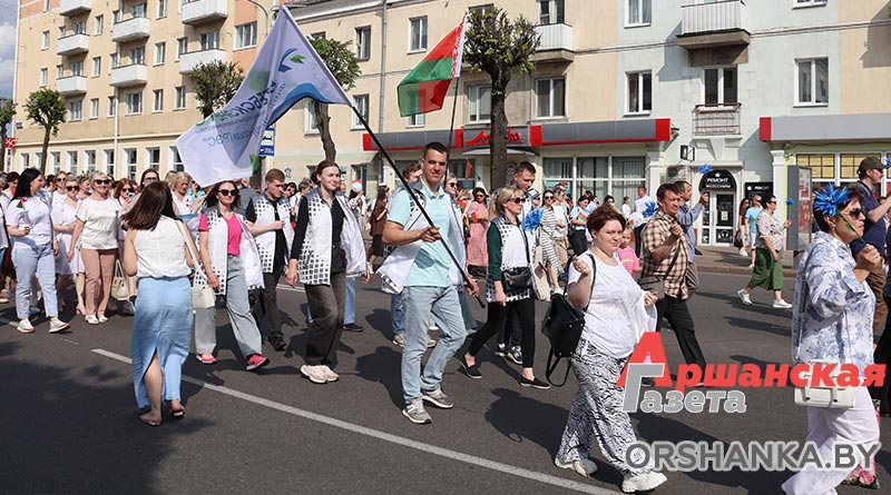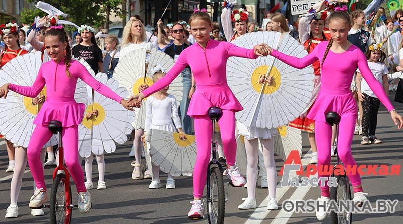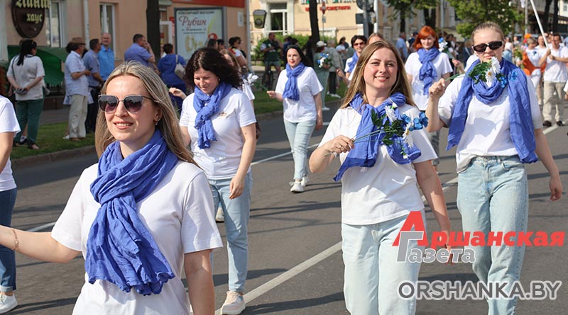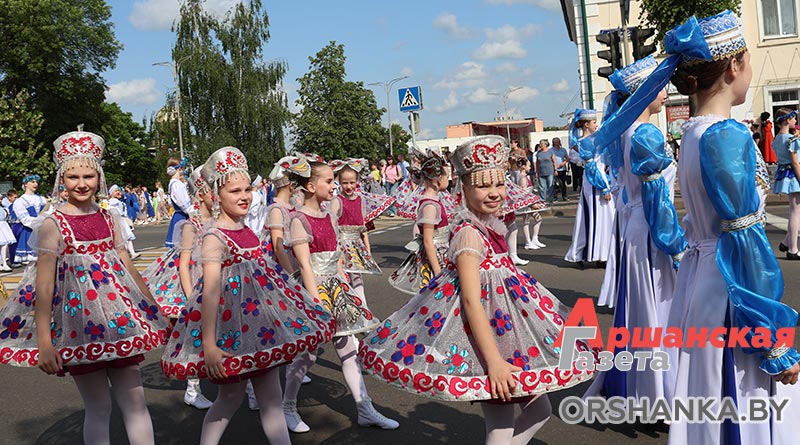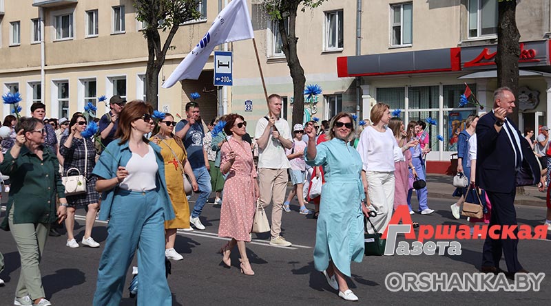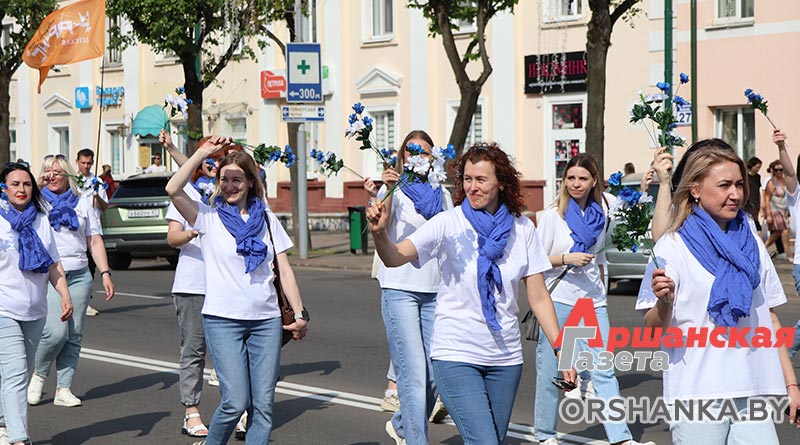 В Орше продолжается фестиваль льна «Поле кветак». После концертной программы «Разам танчым, разам спяваем» он продолжился торжественным шествием «Льняная палитра».