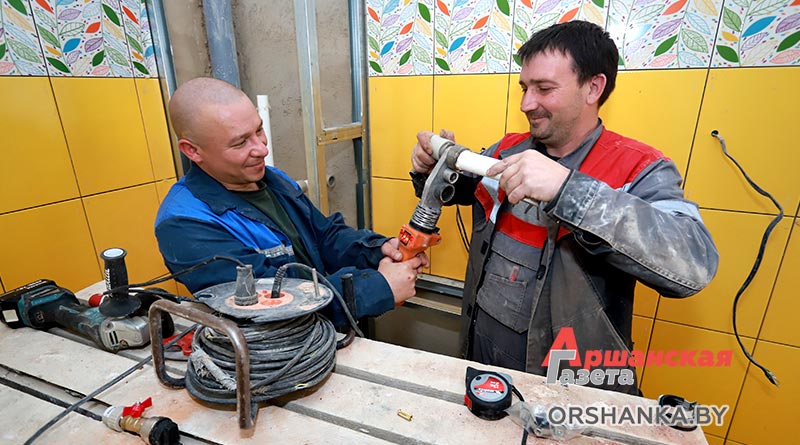 Как рассказал прораб строительного управления СУ № 40 ОАО «Оршанский стройтрест № 18» Сергей Аврамов, сейчас на первом и втором этажах полным ходом ведется шпатлевание, оштукатуривание, окраска стен, потолков, завершаются сантехнические работы, устанавливаются дверные блоки, укладывается керамическая плитка на этажах детского сада. Приступили к изоляции чаши бассейна.